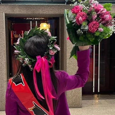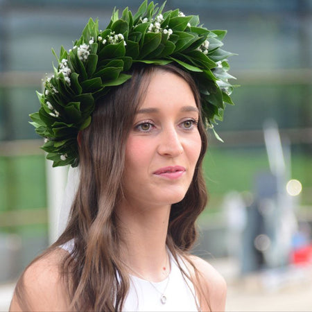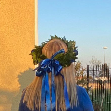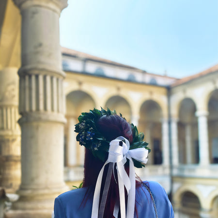 Ogni corona viene preparata al momento dell'ordine, così da garantire freschezza e attenzione ai dettagli. Perfetta per lauree triennali, magistrali, dottorati e ogni cerimonia accademica.